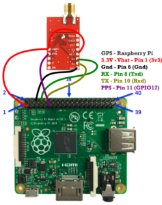connected the GPS module to the 3.3V power supply from the Raspberry Pi, the serial port and GPIO17 for the PPS signal.